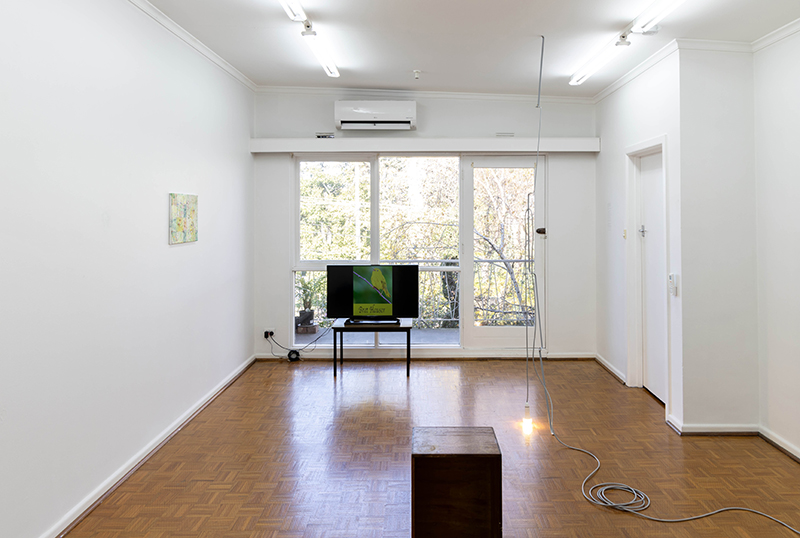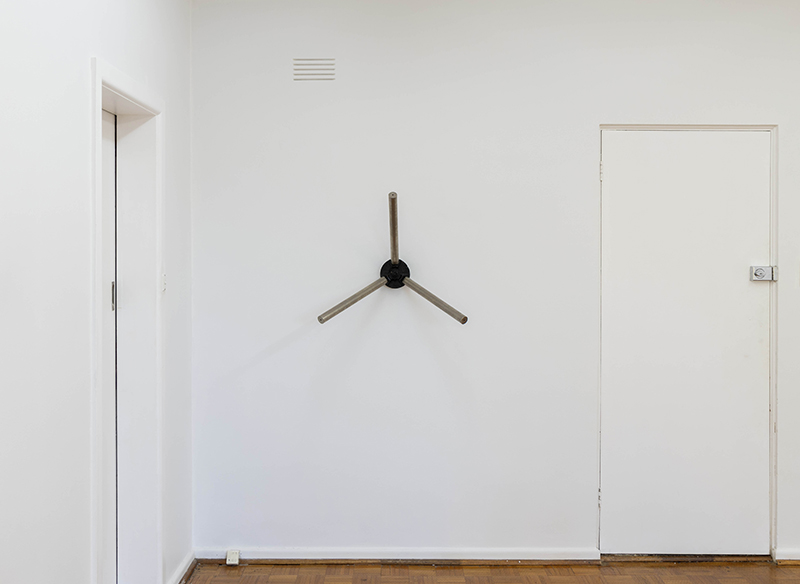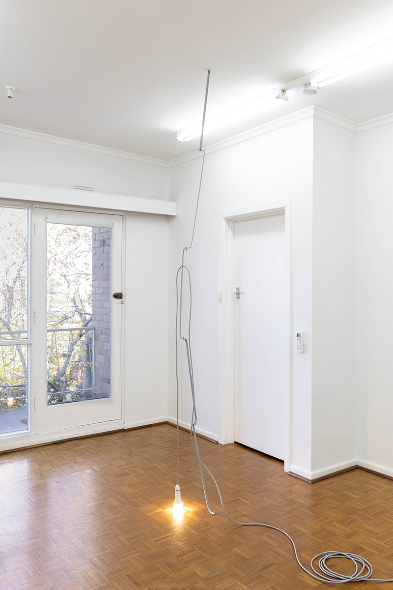 Reclaimed enamel coated steel, brass machine screws, LED light, cable